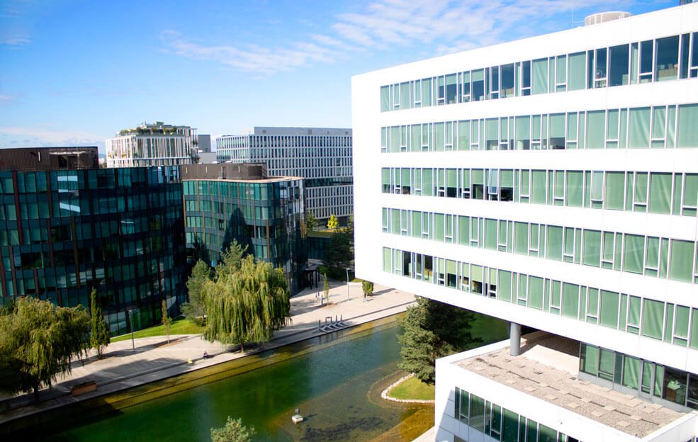 Das Büro der CPB liegt im modernen Viertel Zwei. Die Lage überzeugt nicht nur durch eine optimale Verkehrsanbindung (U-Bahn, Bus), sondern gleichzeitig auch durch die Nähe zur Natur. Der Bürokomplex liegt am Fuße des Praters und ist vom Grünen umgeben – der Arbeitsplatz ist auch mit dem Fahrrad gut erreichbar.
